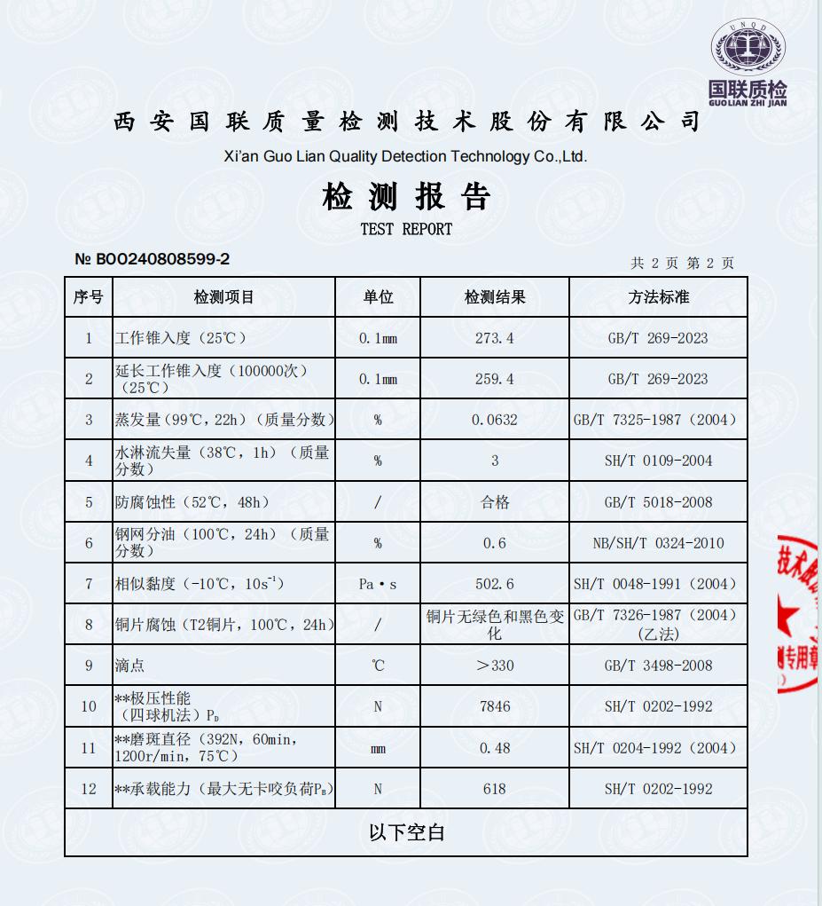 盾构专用润滑脂第三方性能检测报告