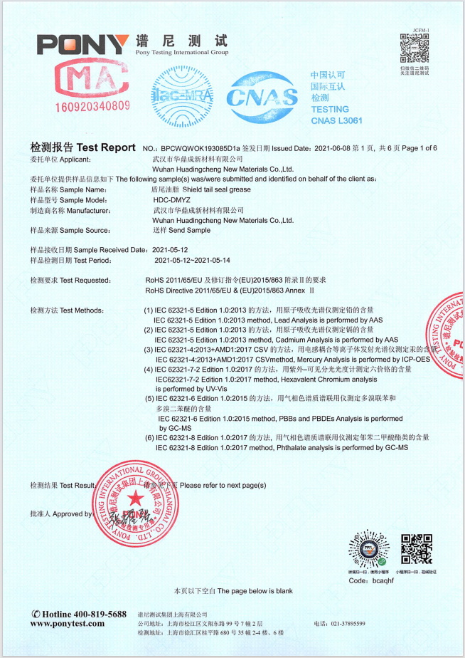 盾构专用润滑脂第三方性能检测报告